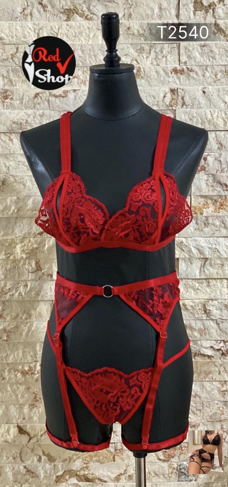 ست شورت سوتین تیک قرمز کد1035T
