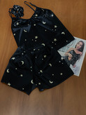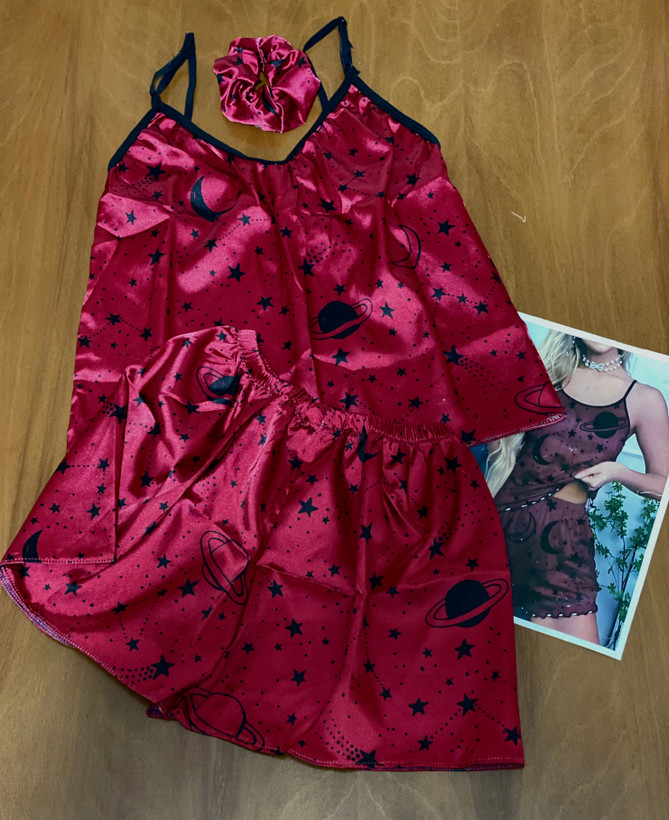 ست لباس خواب LX، یک مجموعه کامل و راحت شامل تاپ و شورتک ساتن است که انتخابی ایدهآل برای فصل گرما میباشد. جنس ساتن لطیف و ابریشمی این ست، حسی دلپذیر و خنک روی پوست ایجاد کرده و خوابی راحت را برای شما تضمین میکند. علاوه بر تاپ بندی و شورتک راحت، این پکیج شامل کش مو و تل موی ست است تا هماهنگی کامل را در استایل خواب شما فراهم آورد. طراحی شیک و جنس باکیفیت این ست، آن را هم برای استفاده شخصی و هم به عنوان هدیهای جذاب، مناسب میسازد.