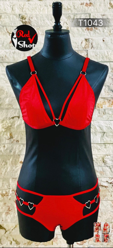 ست شورت و سوتین تیک قرمز کد۱۰۴۳T